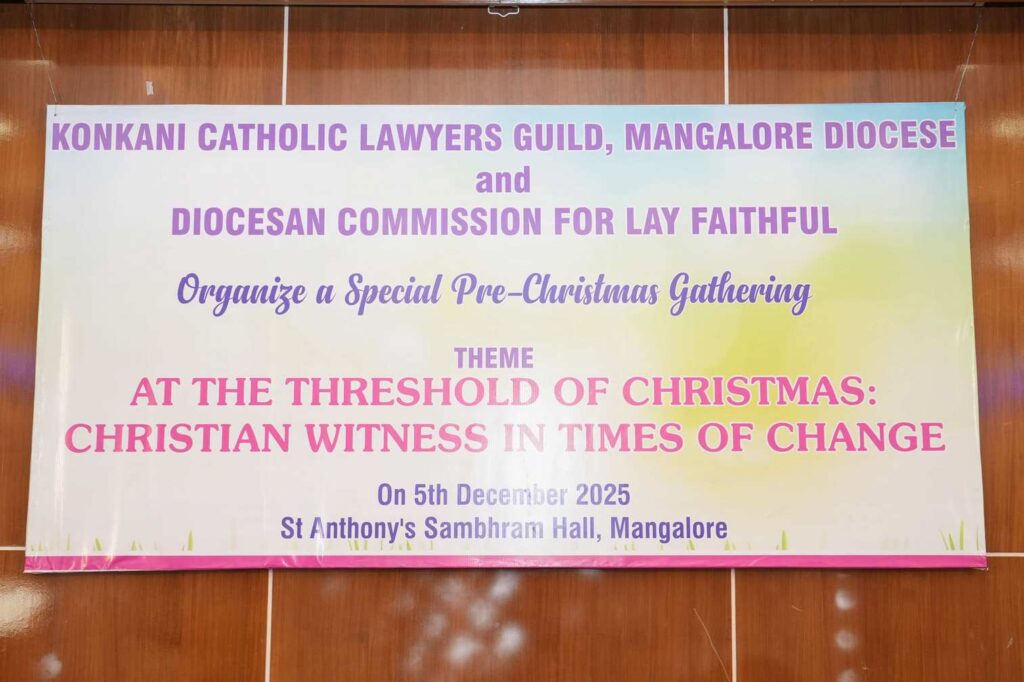 The Cardinal was delivering the keynote address at a special pre-Christmas gathering titled “At the Threshold of Christmas: Christian Witness in Times of Change,” held on Friday, December 5, at St Anthony Ashram’s Sambhram Hall, Jeppu, Mangaluru. The Cardinal was in the city for the celebration of the annual feast at St Joseph Vaz Shrine in Mudipu. The event was jointly organisssed by the Konkani Catholic Lawyers’ Guild (KCLG), Diocese of Mangalore and the Diocesan Commission for Lay Faithful.