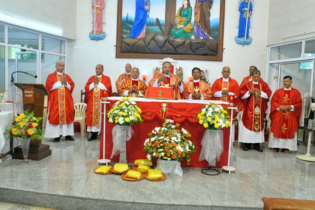 The day began with the Red Mass at St Antony’s Ashram Chapel, Jeppu, presided over by Most Rev. Dr. Peter Paul Saldanha, Bishop of Mangalore, and nine concelebrating priests. In his homily, the Bishop invoked the wisdom of Solomon for the legal fraternity, urging advocates to remain steadfast in truth. “Where there is truth, there is love; and where there is love, there is truth,” he reminded them, setting the moral compass for the day’s proceedings.