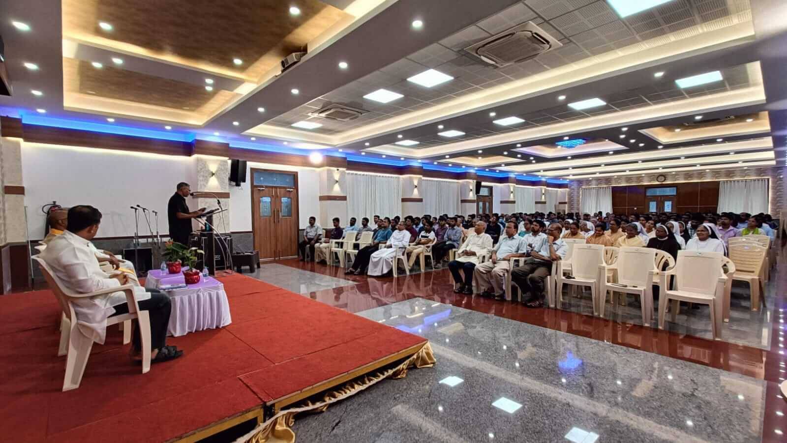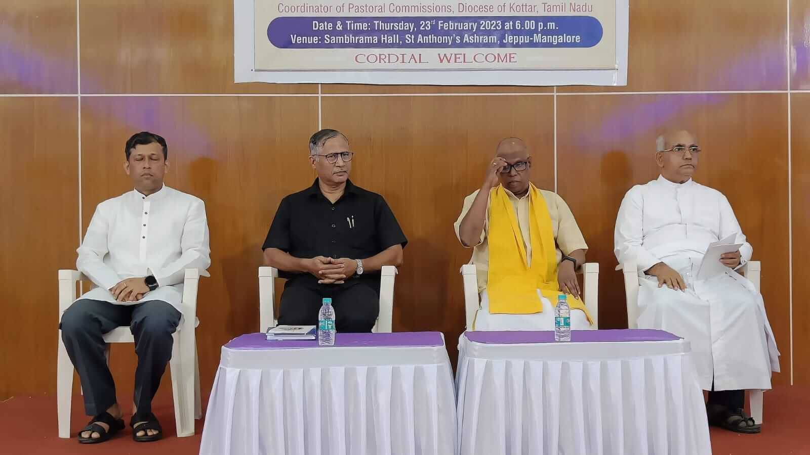The Secretary of Commission for Lay faithful Rev. Fr J. B. Crasta welcomed the gathering and Retd Associate professor of Mathematics from St Aloysius college, Dr John D’Silva moderated the session. Br Jeevan Lobo compered the session. The program was coordinated by Rev. Fr J. B. Crasta and Fr Ivan D’Souza, the Head of the Chair in Christianity. The program was well attended by students residing at St Antony’s Ashram, the students of St Joseph’s Seminary, priests, religious sisters, lay faithful and interested public. There were around 230 participants for the program.